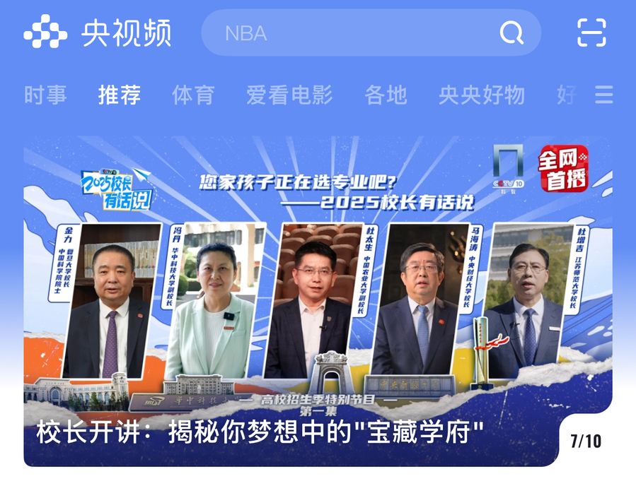 中央电视台CCTV10科教频道6月18日晚间黄金档播出我校校长杜增吉做客央视《2025校长有话说》栏目,向全国观众和高考学子介绍我校整体情况和招生信息,报道内容如下:报道链接:https://tv.cctv.com/2025/06/18/VIDE9D8pEvXNmoo4iCOhCWfd250618.shtml?spm=C55953877151.PXXwefeHcOAR.0.0
