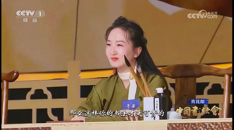 为贯彻落实习近平总书记关于坚定文化自信系列论述,传承和弘扬中华优秀传统文化,2023年,中央电视台推出了大型书法文化节目《中国书法大会》。 经江苏省书协遴选、推荐,央视节目组考核,我校美术学院教师于洁以优异成绩通过考核,成为现场参加录制的30名书友之一。《中国书法大会》共6集,于洁受邀参加了第三集和第四集的现场录制,已于2023年6月16日、23日在央视综合频道(CCTV-1)播出,央视频、央视网等新媒体平台同步上线。节目播出后,广受好评。