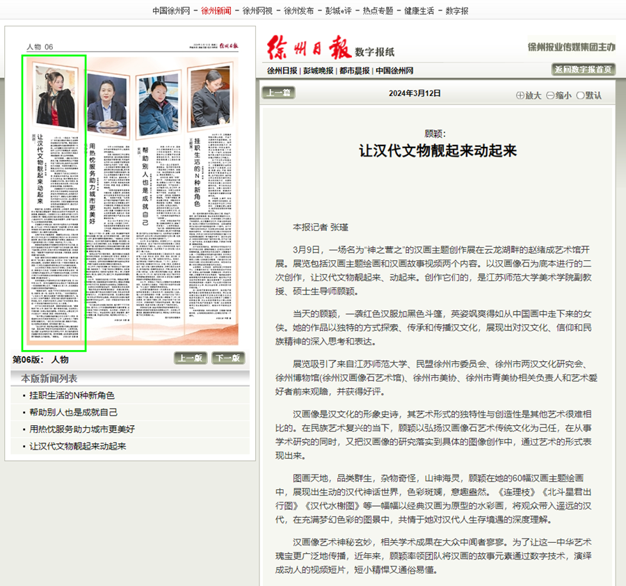 徐州日报3月12日刊发了对我校顾颖老师的专访,报道内容如下: