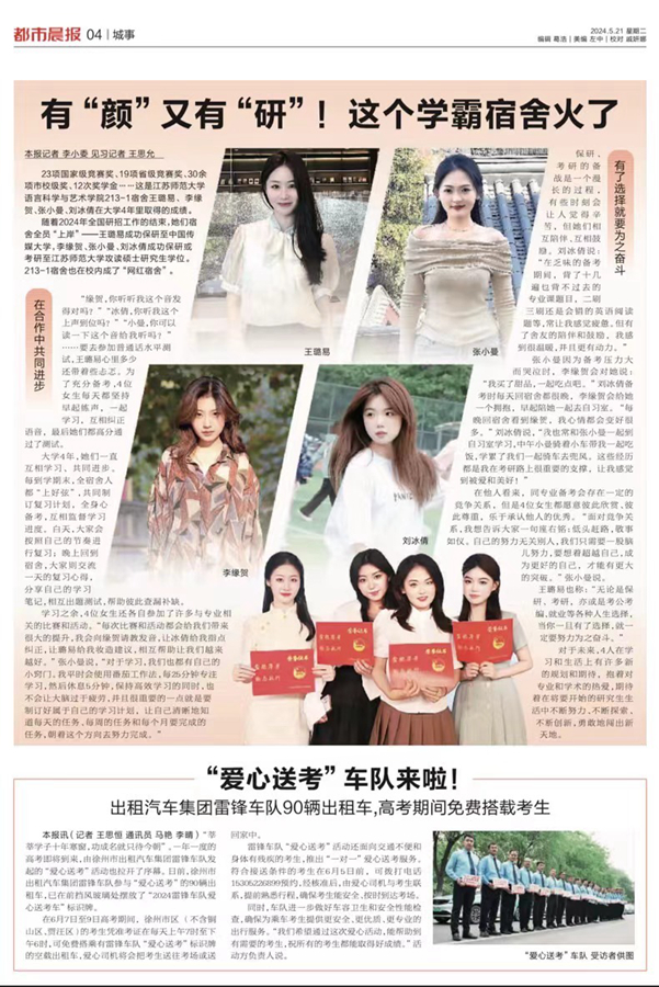 徐州都市晨报5月21日报道我校考研宿舍,报道内容如下: