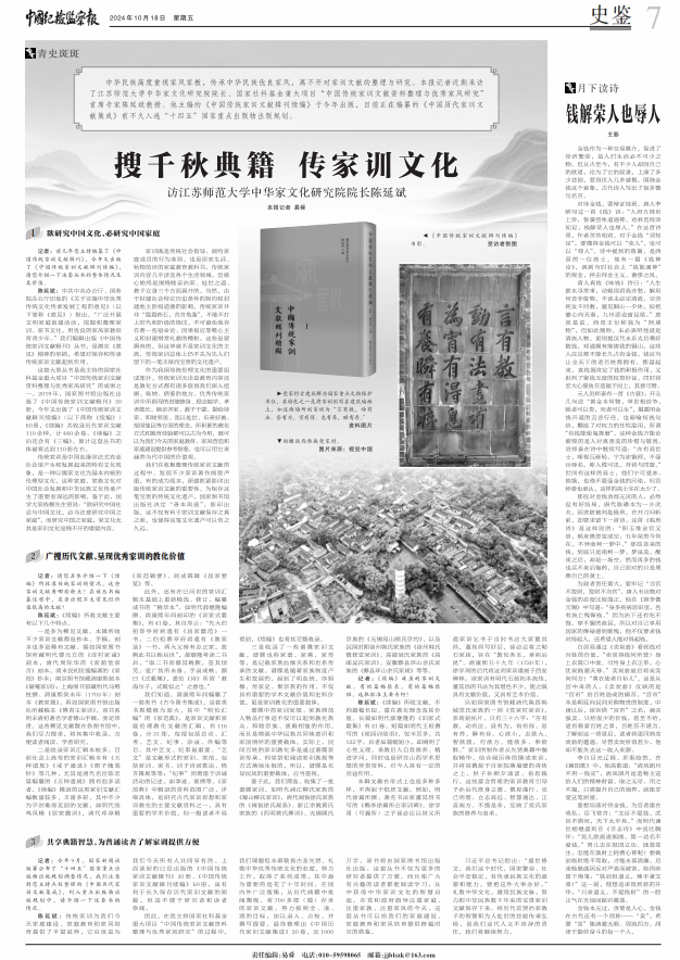 记者:今年9月,国家新闻出版署公布了“十四五”国家重点出版物出版规划调整情况,我们注意到您主持点校整理的《中国历代家训文献集成》,列入重点出版物出版规划中,请介绍一下这套书的情况。