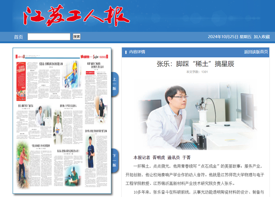 江苏工人报10月25日报道我校张乐教授科研事迹,报道内容如下:
